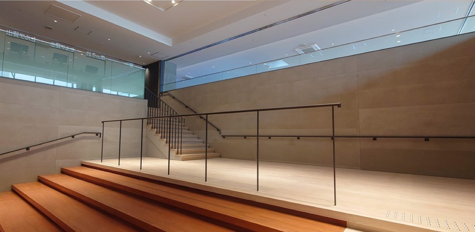 ガラス手摺、壁持出手摺